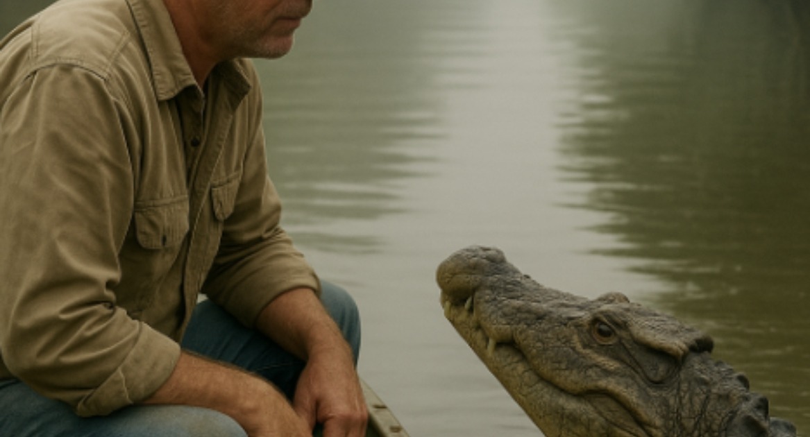Rytas skendėjo rūke. Upė kvėpavo garais, o Džo, įprastai siūbuodamas valtyje, klausėsi tų pat ritmiškų lašų barbenimo į bortą. Žvejyba žadėjo būti rami – kol vanduo staiga neišsprogo purslais. Iš gelmių lėtai pakilo krokodilas. Didžiulis, senovinis, su akimis, kuriose atsispindėjo ne pyktis, o nerimas. Patyręs žvejys iškart suprato: toks elgesys – ne atsitiktinumas. Krokodilas nepuolė, neurzgė. Atrodė, kad jis kvietė. Ir, nežinodamas kodėl, Džo nusprendė sekti šiuo keistu vedliu. Neišversta informacija: Paslaptingas palydovas, policijos uniforma.