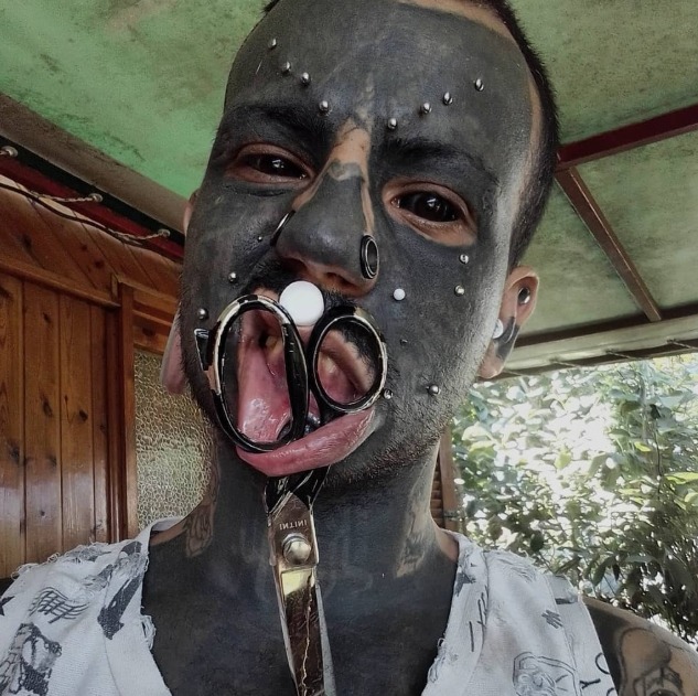 Vos 27-erių Niccolò Saverino iš Aprilijos, Italijos, neatrodo kaip niekas kitas – ir būtent to jis nori. Per dešimtmetį jis pavertė savo kūną gyva drobe. Beveik 70% jo odos padengta tatuiruotėmis, jo liežuvis perskeltas pusiau, o maži poodiniai implantai kyšo po jo oda kaip ragai. Jo ausys ir veidas papuošti pīrsingais ir tuneliais, kiekviena detalė yra meno dalis, kurią jis nešiojasi su savimi kasdien. Neišversta informacija: Atraskite daugiau, šuo, šuo, įžymybė.